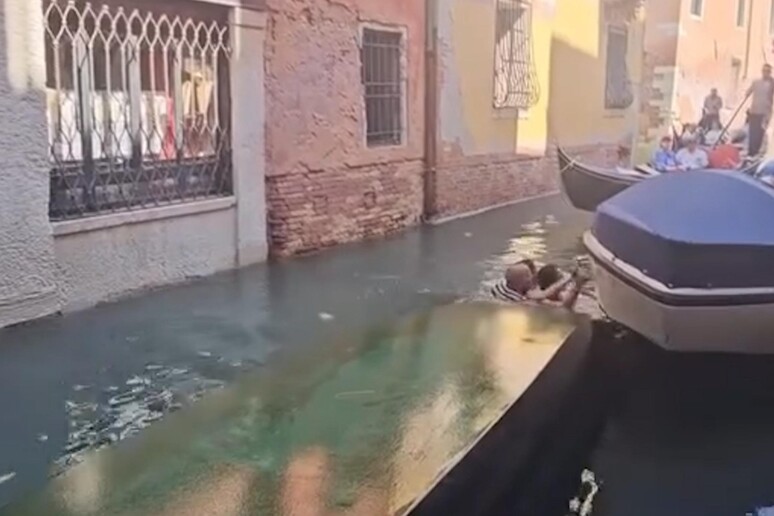 stamani,a Venezia,facendo fare un "bagno" non previsto al