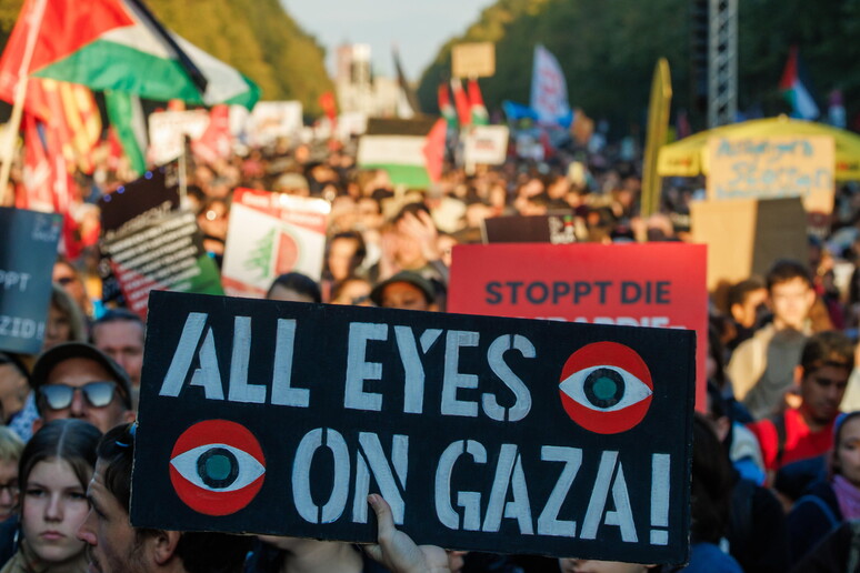 100.000 partecipanti. In testa,striscioni contro il 'genocidio'